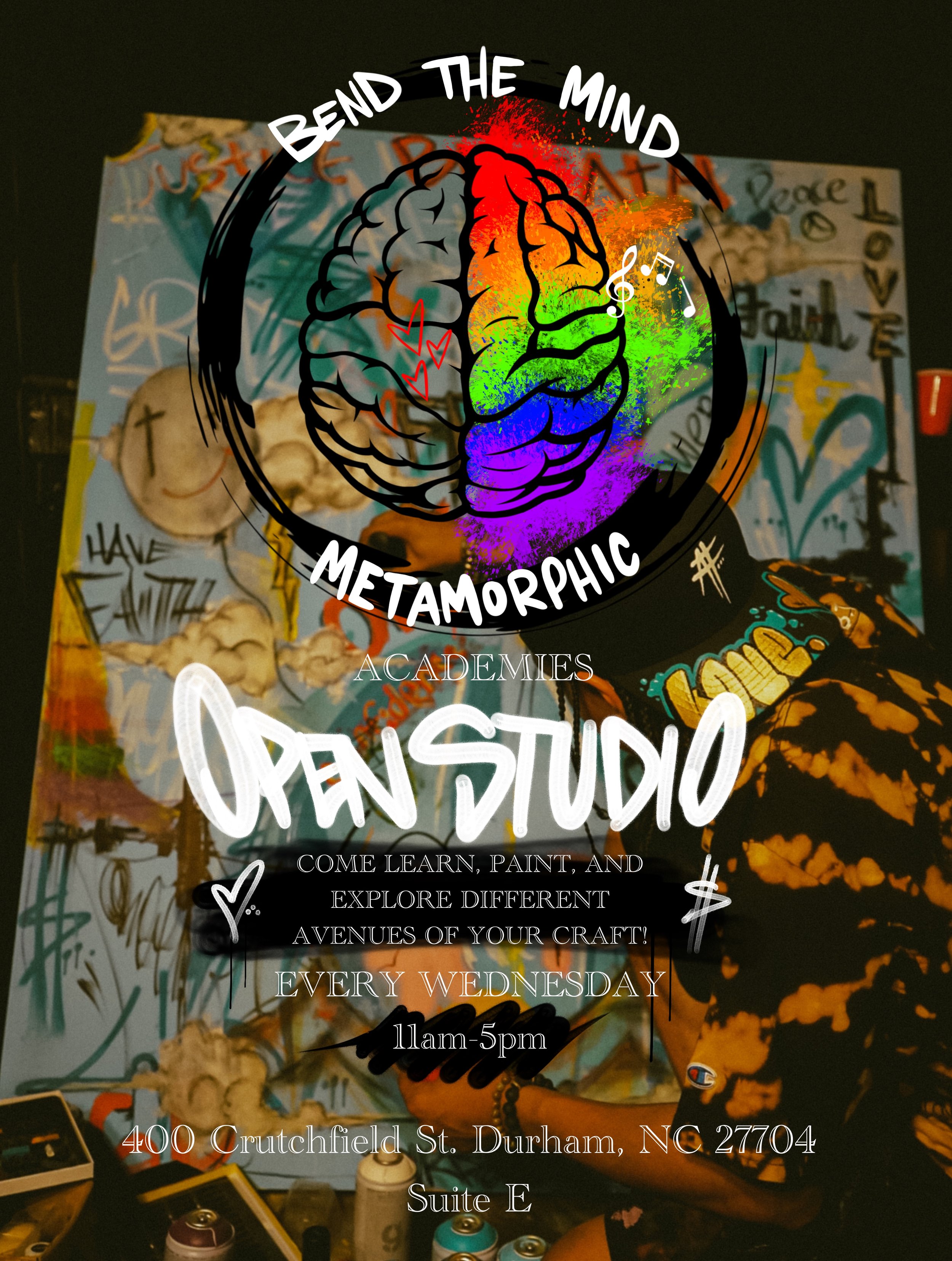Come out and enjoy a evening of open community self expression. Engage in a safe space on our huge canvas to let go and tip into your inner Artist. Open free to the community for all ages.